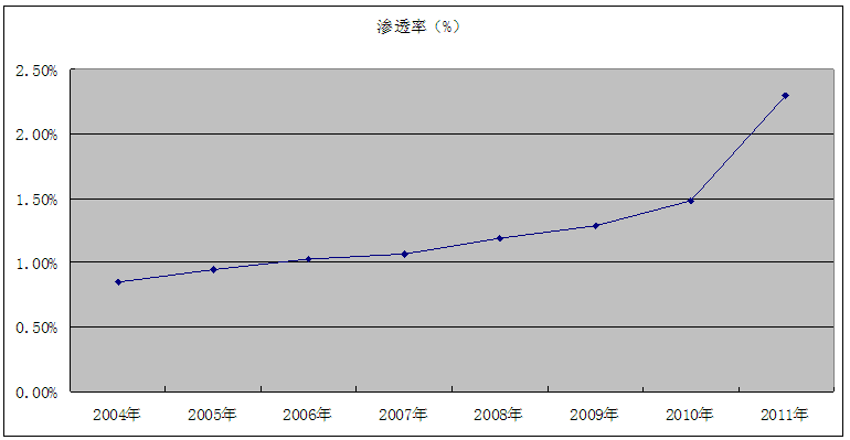 图表 2007-2011年中国有机大米市场渗透率走势图