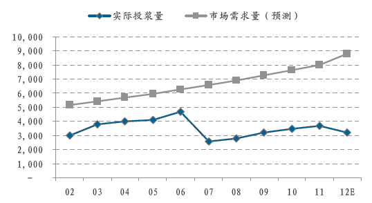 图表 我国血液制品投浆量与需求量情况